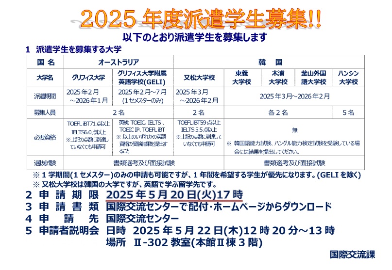 홈 EVENT 시모노세키 시립 대학 EVENT 시모노세키 시립 대학과 시에나 대학이 협정 체결 - 본교 최초의 이탈리아 대학과의 제휴, 오사카, 간사이 박람회에서 조인식을 실시 2025.06.02 이사장상 시상식을 개최했습니다. 2025.05.28 【수강생 모집】부속 평생교육센터 2025년도 시모노세키시립대학 시민대학 공개 강좌(봄학기) 2025.05.28 간호학부 캠퍼스 투어를 개최했습니다 2025.05.26 2024년도 성적 우수자 표창식을 개최했습니다. 2025.05.19 【국제교류센터】일본에 있으면서 세계를 알자!알고 있는 것 같고 사실은 모르는 프랑스의 모습에 대해 이야기합니다!~를 개최합니다. 2025.05.15 공개 세미나의 안내(전공과) 2025.04.25 간호학부 캠퍼스 투어 개최(5월 11일) 알림 2025.04.22 【국제교류센터】2025년도 외국 연수 설명회의 소식 2025.04.15 2025년도 입학식을 거행했습니다. 2025.04.08 2025년도 제II기 파견 학생을 모집합니다. 2025.04.07 【수강생 모집】2025년도 이수 증명 프로그램, 스킬 업 코스를 모집합니다. 2025.03.31 2024년도 시모노세키 시립 대학 졸업식·학위기 수여식을 거행했습니다. 2025.03.27 【국제교류센터】유학 체험 발표회를 개최합니다!! 2025.03.26 시모노세키 시립 대학 종합대학 이행 기념 국제 심포지엄 「세계의 사례로부터 배우는 관광 전략과 마을 만들기」개최의 안내 2025.03.13 «12345...1020...»