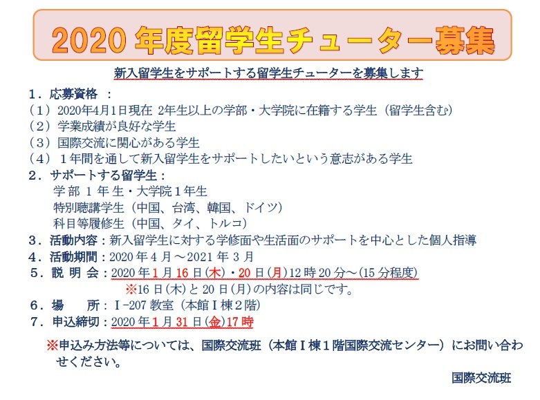 #국제교류2020년도 유학생 튜터를 모집합니다.