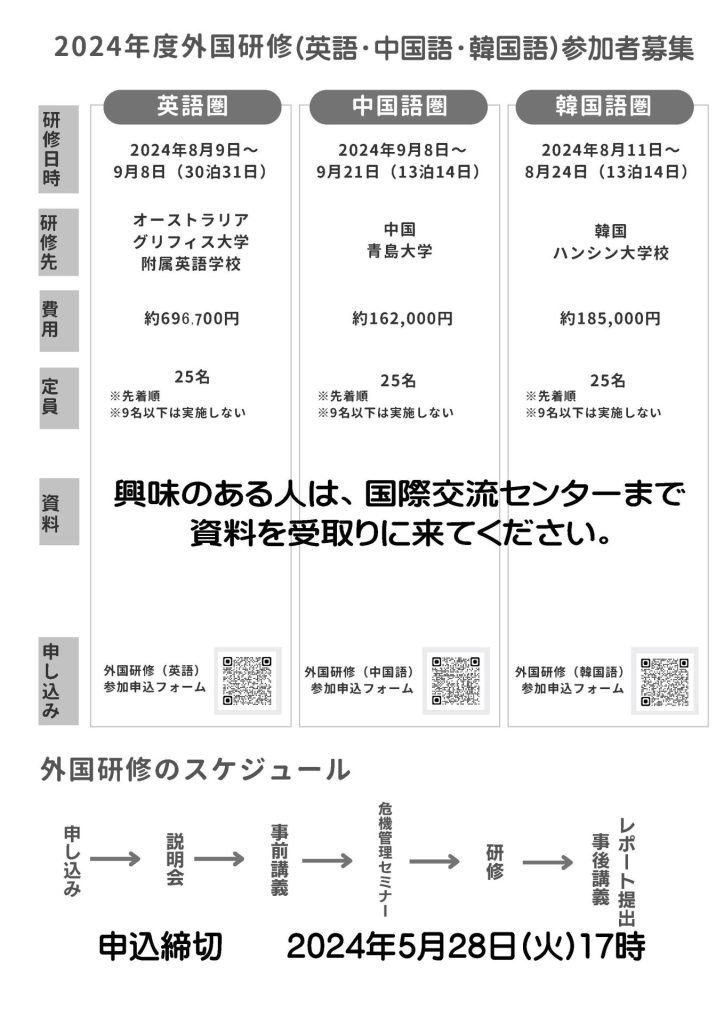 #국제교류【국제교류센터】올여름은 외국 연수(영어・중국어・한국어)에 참가하자!