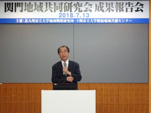 7월 13일(금)해협 메세 시모노세키 801 대회의실에서, 기타큐슈 시립 대학 지역 전략 연구소와 본학 부속 지역 공창 센터의 공동 개최에 의한 「간몬 지역 공동 연구회 성과 보고회」를 개최했습니다.