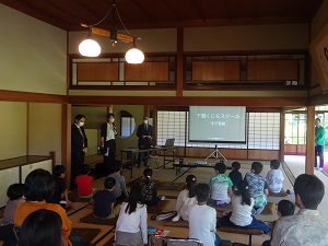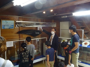 이벤트에서는 우선 본학의 고래 박사·기시모토 미쓰히로 특명 교수에 의한 「고래」에 관한 퀴즈를 통해서, 고래의 생태나 시모노세키와 고래의 관계에 대해 배웠습니다.그 후, 참가자는 2그룹으로 나뉘어, 고래 자료 전시실의 자료를 기시모토 선생님에 의한 해설과 함께 견학을 하거나 말차와 과자를 즐기는 다도 체험을 하기도 했습니다.