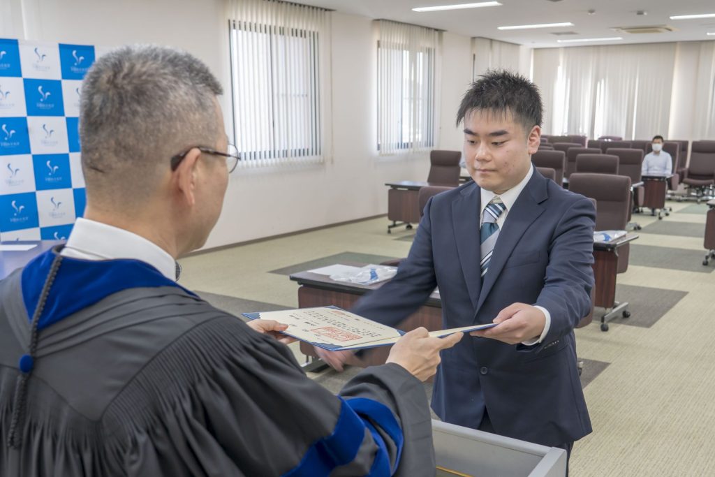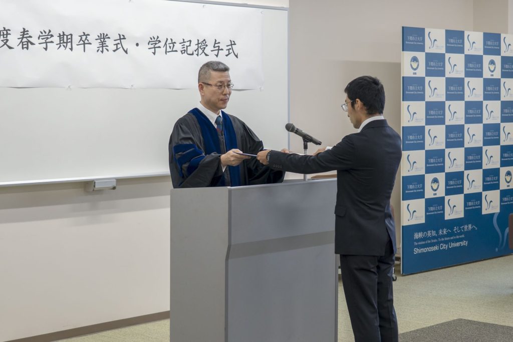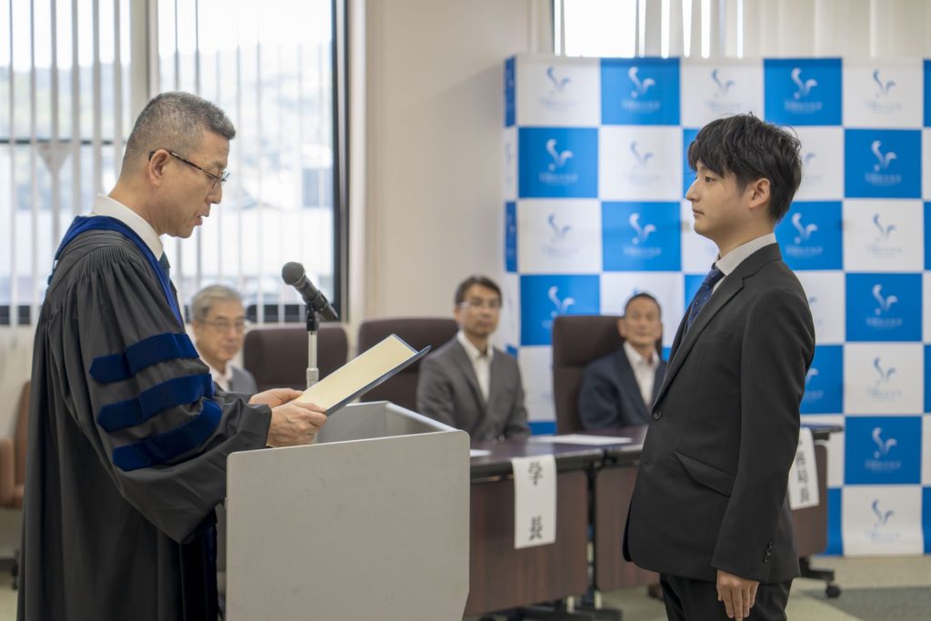 당일에는 4명의 졸업생이 참석해 한 명씩 총장에서 학위기를 받았습니다.